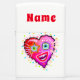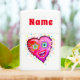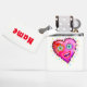 A smiling, contemporary art style emoji as a red heart shaped emoticon face in the bright, colorful Valentine colors of red, pinks, magentas and purples accented with other complementary colors.