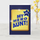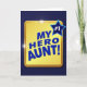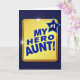 This card centers on a rounded yellow plaque edged with a shiny gold border, set against a deep indigo background that makes the design feel close and admiring ❤️. Soft light glints across the plaque like tiny flares, giving it a polished, celebratory look without feeling too formal. Across the middle, tilted blue 3D lettering reads “MY HERO AUNT!” and the raised letters cast small shadows that add depth and a sense of affectionate emphasis. The message sits prominently on the plaque, with the blue text standing out clearly against the warm yellow. In the upper right, a five-pointed star badge overlaps the plaque, suggesting a proud, supportive bond like a warm hug in graphic form 🌼. The star is a darker blue with a lighter blue outline, and it contains a crisp white “#1” centered inside. The yellow plaque and blue elements are framed by subtle highlights and shadowing, and the star badge sits slightly above the plaque’s right edge.