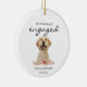 Featuring an adorable dog surrounded by soft floral accents and the couple’s names and engagement date, this ornament is a joyful blend of love and playfulness. Perfect for dog parents who just got engaged, it turns your beloved pet into part of the celebration.