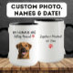 Celebrate your special day with a touch of furry love! This custom dog mug features the adorable phrase "My Humans Are Getting Married" and includes your pet’s photo on one side, with your names and wedding year on the other. A perfect engagement gift for dog lovers or a fun wedding announcement from your four-legged family member. Personalize it with your dog's face and your own names + date to make it truly yours!**
