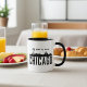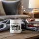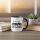 This sleek minimalist design highlights the city's name, "Chicago," showcased in modern typography alongside a stunning black-and-white panoramic silhouette of its iconic skyline. It also features a customizable typography field currently displaying the phrase "My kind of town." Personalize this Chicago mug or buy it as is.