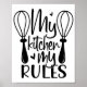 This poster boasts a commanding design, with the words "My Kitchen My Rules" displayed proudly in a captivating font. Its striking appearance is sure to catch the attention of anyone who enters your cooking domain.