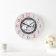 Stylish black and white clock printed with the quote MY KITCHEN MY RULES, with a white chef hat and red numerals. Perfect for home cooks, restaurant chefs and bossy cooks