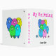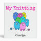 This is a useful binder / folder / ring folder for any keen knitter. It's decorated with cute, colourful, fluffy, cartoon style sheep in bright shades of pink, blue, green and yellow, on a white background, and can be personalized with your name.