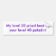 My level 30 priest beat up your level 40 paladin! bumper sticker
