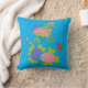 Nonya inspired design of peonies printed on turquoise fabric square throw pillow
