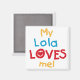 My Lola Loves Me T-shirts, cards, stickers, bodysuits bags, and more with colorful red, yellow, and blue text and heart design. These Lola Loves me apparel and gift items will make lola smile!