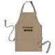 The apron is of very good quality. I used it while icing cookies. The dark colored icing washed off of the apron very well! The neck strap is sturdy and easy to resize on the adult size apron. The print was clear and well defined. I am glad I was able to personalize with name.