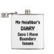 For the sarcasm lover in all of us. Check out this witty “My Neighbor’s Diary Says I Have Boundary Issues” design on apparel and gifts.