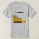 My other ride is an excavator in black uppercase mixed font with an icon image of an orange excavator. Set on solid white.