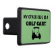 My other ride is a golf cart in black uppercase mixed font with an icon image of a golf cart. Set on solid soft green.