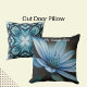 My Outside Oasis", Blue Flower on Black Background Outdoor Pillow