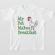 My Pet Makes Breakfast funny design featuring a cartoon chicken. Great for a boy or girl who has backyard chickens. Show off your chicken's talent with this cute design.