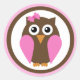My Pink Owl Bow Sticker Round