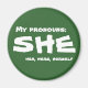 Let people know that the right pronouns to use for you are she, her, hers, and herself. (Feel free to change the colors by customizing the product. You can change the background color by clicking on "edit" and then "background". I chose green because it's a gender-neutral color and in the genderqueer and neutrois flags.)