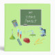 This is a great binder for your Science projects...features calculator, test tubes, microscope, dna, pencils...etc. on front, and a chalk board with the words "My Science Project" written in chalky handwriting...you can customize this text to give it a new title! The spine text, and the background color are also changeable, and there's a spot on the back to add additional info. if you wish...name perhaps? If you want the back blank, simply delete this item.