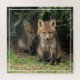 Two red fox kits enjoy the shade of an evergreen on a warm Spring day.