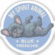 Flat cartoon blue French Bulldog lounges paws skyward, completely unbothered with half-lidded amber eyes on pastel background circle. "MY SPIRIT ANIMAL BLUE FRENCHIE" with stars—dog moms of rare blues, customize this chill sticker for gear or prints.