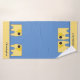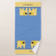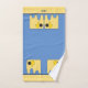 This thick, velvety towel set features a cute cartoon style sunny yellow elephant on a trendy blue background w/ thin black & white borders above a wide yellow band at bottom. Bath size is ready to personalize w/ your (or your kid's) name, hand towel has space for a monogram.