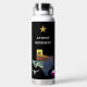A quality, water bottle with popup straw and a distinctive design. It features a Texas map outline covered with typical Texas images (photos). Alongside is an artistic image of a Longhorn steer and a small image of the Texas flag. Above your name is a single gold star representative of the Lone Star State. The design appears on two "sides" of the bottle. Personalize with your name. When you select “Personalize this design” you will be offered options to easily change the text (wording, plus type font, color, size, position) and to possibly edit the design elements with changes you may want to make.
