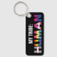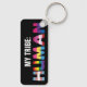 Keychain with an all inclusive message, features "my tribe" in white font and "human" in LGBTQ colors.