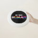 Frisbee with an all inclusive message, features "my tribe" in white font and "human" in LGBTQ colors.