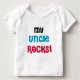 Text design that reads My Uncle Rocks, great for both nieces and nephews that think their uncle is the best! My Uncle Rocks T-shirts, long sleeve tees, football bodysuits, organic bodysuits, hats, sweatshirts, and much more.