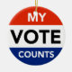 There is no more important job in our democracy than that of the voter. If you’ve ever had any doubt that your vote counts, just take a look at so many of the recent squeaker elections in our divided politics. In some cases just a handful of votes made the difference in statewide, primary and general election offices. If supporters of the opposing candidate had shown up at the polls, the results would have been different. It’s that simple. Show the world that “My Vote Counts” with this election button design, because it really does.