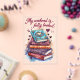 A cozy book lover quote celebrating weekends spent reading. Decorative stacked books with hearts create a warm and relaxed reading mood for people who love quiet time with stories.