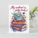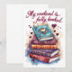 A cozy book lover quote celebrating weekends spent reading. Decorative stacked books with hearts create a warm and relaxed reading mood for people who love quiet time with stories.