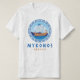 Mykonos, Greece men's T-Shirt with a design of an ancient Greek ship and Greek style lettering. This design features an Ancient Greece ship and the Greek key lines pattern in a circle with the sea and sky. This Greek style font design makes this tee an ideal gift or souvenir or to wear while you are on vacation in Mykonos island.