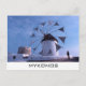 A man admires one of the famous windmills on the charming island of Mykonos, Greece