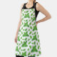 Great color and even though I ordered the kid size, it covers well enough to use during the holidays. I am not a big woman and prefer a shorter apron. I stand 5"6" and the length of the garment goes to mid-thigh. The tie straps fit well at my waist and even though there is no neck strap adjustment, the opening is plenty big enough. I am happy with the size and fit. I am sharing my apron with my 10 year old grandson, too! The color is vibrant and looks good, as shown on the website. The stitching looks strong and reinforced. Photographed is front side and back side of the apron, reinforced straps and coloring. My phone camera may not be the best at showing the details.