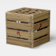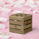 A favor box that looks like a wooden crate with eyes peeking out of a crack in the front. It has customizable text on the top and on the back. Cute for small gifts or treats.