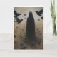 A mysterious figure in black stands in a misty field with crows flying around on this beautiful, Gothic Halloween card.
