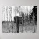Mysterious sing in the forest. Black and white photo.