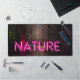 Digital composition of my own photograph with an added neon sign nature in magenta color with glow and lighting all around the forest.