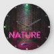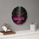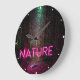 Digital composition of my own photograph with an added neon sign nature in magenta color with glow and lighting all around the forest.