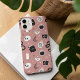 A spooky chic phone case featuring a pattern of snakes, mystical crystals, potions, spellbooks, candles, jars, skulls, tarot cards, and potions on a dusty rose blush pink background.
