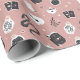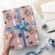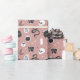 Spooky chic wrapping paper features a pattern of snakes, mystical crystals, potions, spellbooks, candles, jars, skulls, tarot cards, and potions on a dusty blush rose pink background.