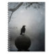 Crow on a globe in a mysterious foggy night is on the cover of a notebook that has a lot of room to add a name or message.