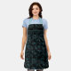 Apron with custom name / word featuring mystic faux-glitter teal color crystal, gem stone shapes on black background for cooks, chefs, food lovers. Easily amend or delete the default name by clicking on the Personalize button.