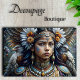 This regal portrait marries mystical elements with ornate detail. The composition features intricate jewelry in turquoise and gold, paired with majestic eagle companions. The color palette moves from deep teals to burnished golds, with white feather accents and rich earth tones creating dramatic contrast.