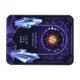 Mystic Sun Event Save the Date Magnet featuring a mystical design inspired by astrology, esoteric, occult, and mysterious elements. This design has hues of blue, purple, and orange, a starry background, crystals, constellations, a sun with a face and moon phases. Includes a template for personal customization.