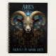 Astrology-inspired Aries planner cover featuring a stylized ram and swirling decorative flourishes. Includes editable text fields for name and year customization.