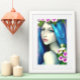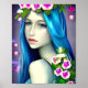 Pretty lady with white and purple flowers in her blue hair. Beautiful blue eyes with pale skin fairy tale fantasy art. Ai art generativecontent