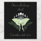This striking, boho-inspired wedding design features an ethereal luna moth centered beneath a moon phase motif, framed by delicate leafy branches. Set against a bold black background, the soft green wings, subtle lavender accents, and mystical detailing create a dramatic yet romantic aesthetic rooted in nature and moon symbolism.