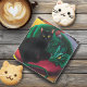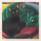 Mystical Black Cat Emerald Green Dragon Fantasy Glass Coaster