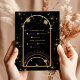 Mystical Black Gold Celestial Stars Wedding RSVP Card
