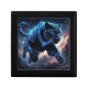 A glowing black panther adorned with magical patterns, running dynamically in a cosmic landscape.
